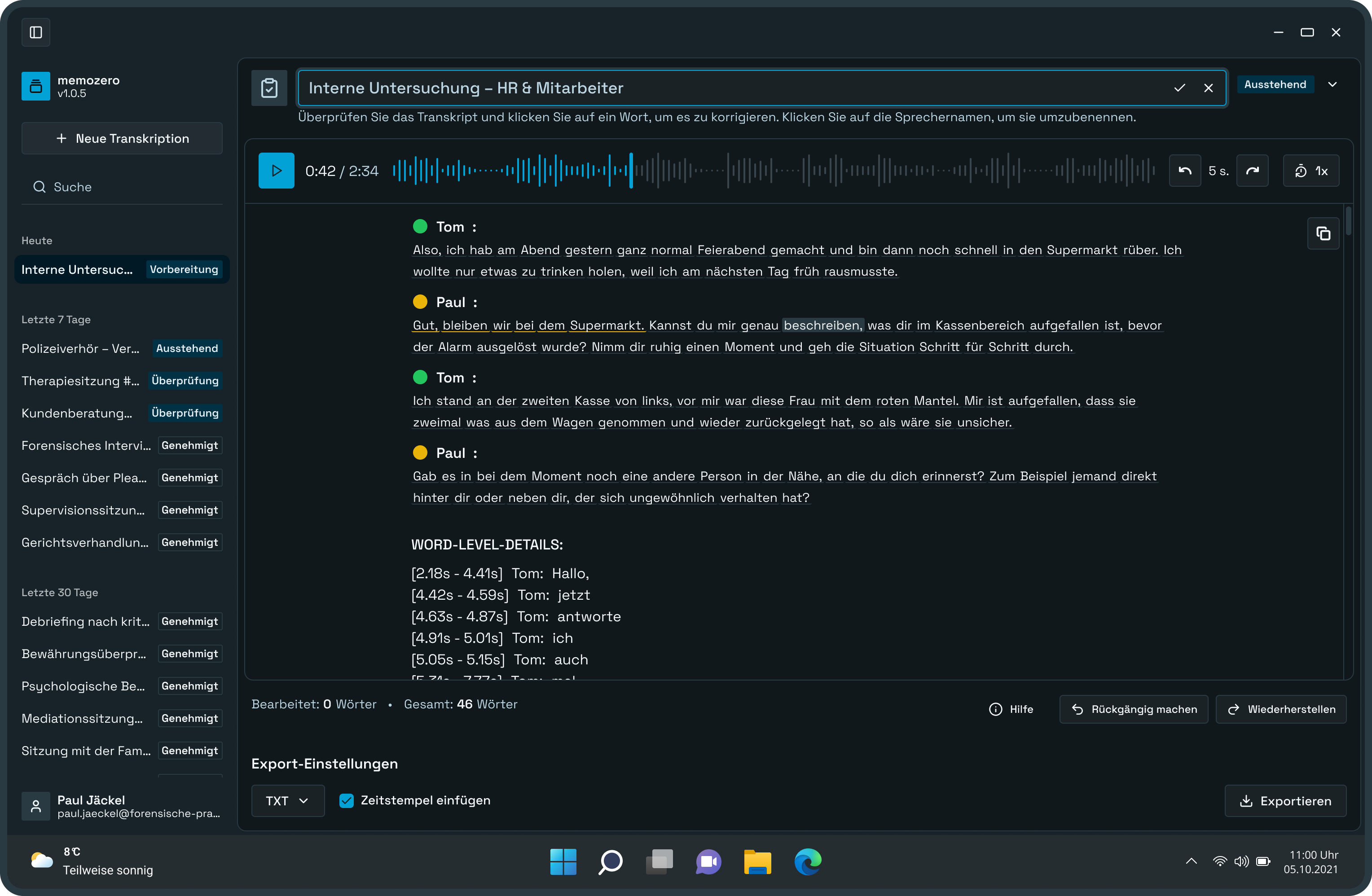 Lange habe ich nach einem Transkriptionstool gesucht, dem ich höchst sensible Daten anvertrauen und dessen Ergebnisse ich einfach und zeitsparend kontrollieren kann. Am Ende mussten wir dieses Tool selbst bauen. Dafür möchte ich es nun nicht mehr missen und kann es auch meinem Kollegium zur Verfügung stellen.